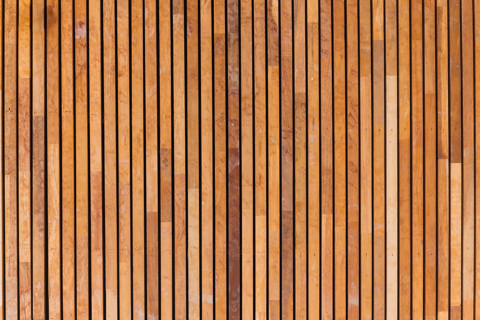 Enhance your interiors with this slatted wood wallpaper featuring dark dividing lines. The contrast adds depth and sophistication, creating a warm, stylish, and contemporary atmosphere in any space.